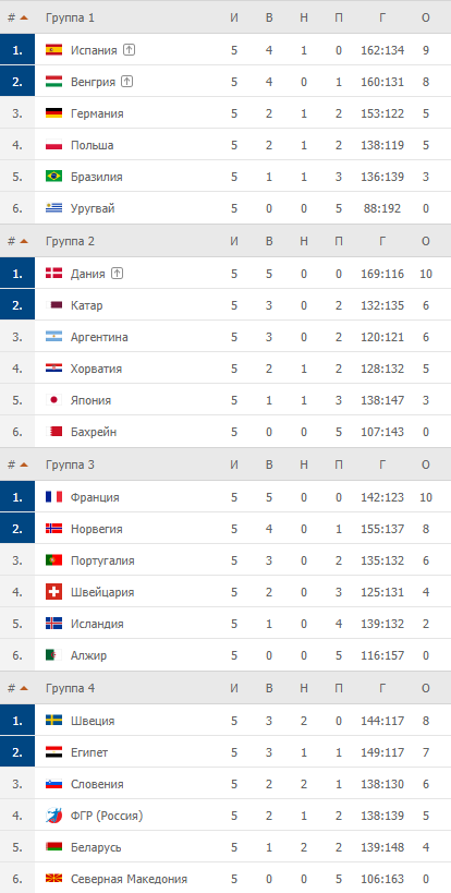 - Испания – Дания – 33:35 (16:18)