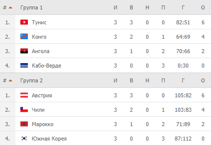 - Группа ІІ. Марокко – Чили – 17:28 (12:14)