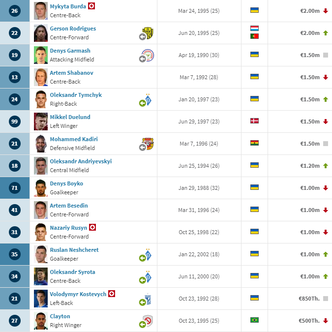 Кто сколько стоит на рынке? Трансферная стоимость игроков Динамо