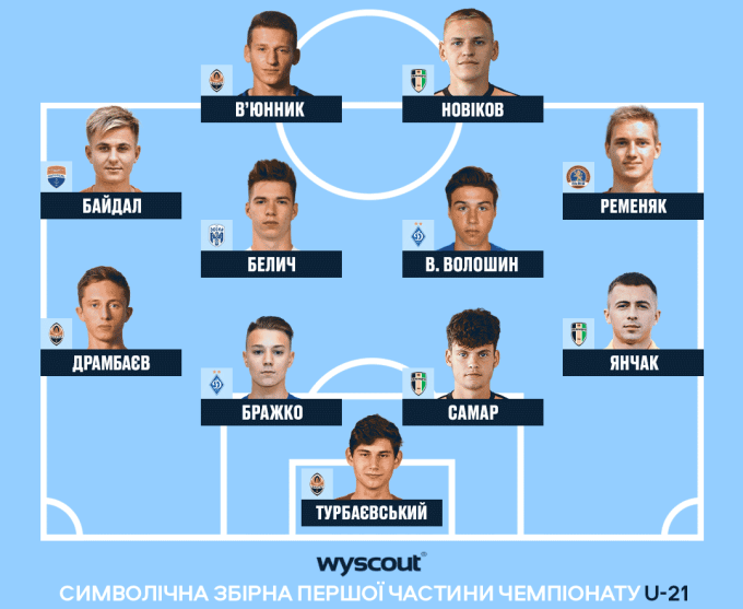 Портал Wyscout на основе анализа первой части чемпионата Украины U-21 составил символическую сборную игроков с лучшими оценками на своей позиции.
