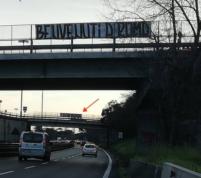 Фанаты «Ромы» по дороге следования автобуса с командой «Лацио» развесили баннеры, один из которых гласит: «Добро пожаловать в Рим», намекая что «Лацио» команда из региона. Второй баннер перевода не требует.