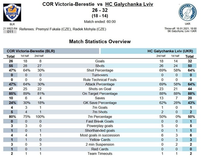 «Виктория-Берестье» – «Галичанка» – 26:32 (18:14)