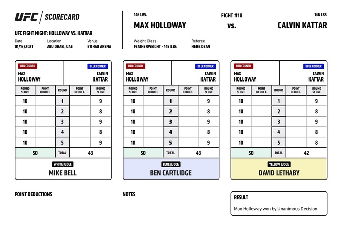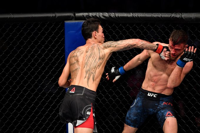 Кэлвин выстоял до конца поединка, но судьи отдали перевес Максу Холлоуэю с огромным перевесом.