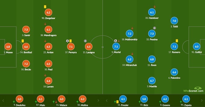 Малиновский хорошо проявил себя на поле, и в итоге получил от авторитетного портала WhoScored оценку 7,2 – третий самый высокий балл среди всех участников матча. Более высокий балл (7,3) получил только его партнер по команде Маттео Пессина и защитник «Удинезе» Самир. Такой же балл, как у Малиновского - у еще одного защитника «Удинезе», Бекао:
