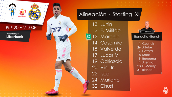 Украинский вратарь Андрей Лунин дебютирует за мадридский «Реал». Он назван Зинедином Зиданом в основе команды на кубковую игру.