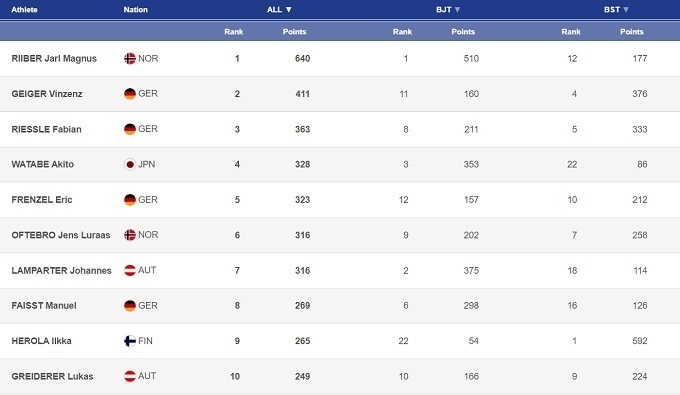 Так или иначе, благодаря второму месту в воскресенье Айзенбихлер сократил отставание от Гранеруда в общем зачете Кубка мира до 210 очков. Хотя, повторимся, вряд ли это сейчас актуально, учитывая, что норвежец находится в прекрасной форме – главное, чтобы его воскресное падение не сказалось на его психологическом состоянии.