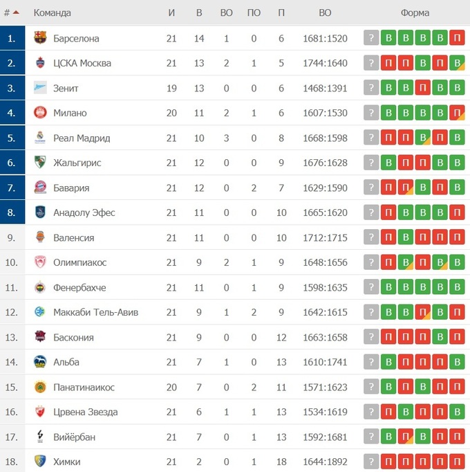 В рамках регулярного чемпионата Евролиги состоялось четыре матча. В центральном матче тура «Фенербахче» на выезде обыграл ЦСКА (89:83).