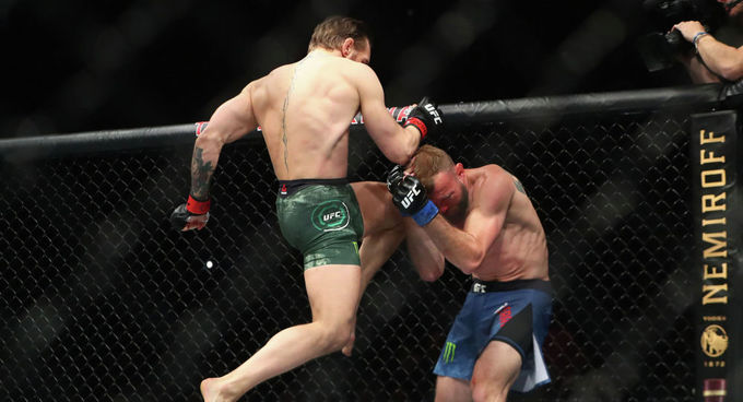 Он не только совершил немыслимое и отобрал у Альдо пояс чемпиона UFC в полулегком весе, но и сделал это за каких-то 13 секунд. Левый панч навстречу отправляет Альдо в сенсационный нокаут, и ирландец бьет рекорд Ронды Роузи по самому быстрому финишу в титульном поединке UFC, причем делает это в бою против человека, который не проигрывал более десяти лет.