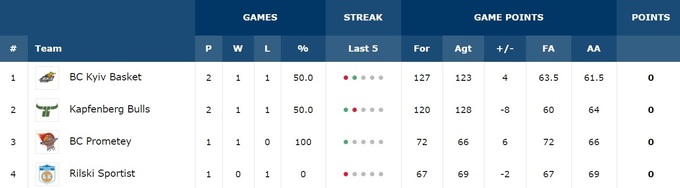 Благодаря этой победе «Киев-Баскет» вышел на первое место в группе B. В другом матче дня сыграют «Прометей» и «Рилски».