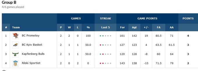 Киевляне начали групповой раунд с поражения в матче с «Прометеем» – 66:72. Но затем подопечные Айнарса Багатскиса одолели австрийский «Калфенберг» (61:51) и приблизились к выходу в 1/8 финала Кубка Европы ФИБА. А вот у «Рилски Спортист» шансов на продолжение борьбы в еврокубковом турнире осталось совсем мало. Болгарский клуб поочередно проиграл «Калфенбергу» (67:69) и «Прометею» (76:89). Будем надеяться, что все украинские команды (в Кубке Европы участвует также «Днепр») станут участниками следующей стадии.