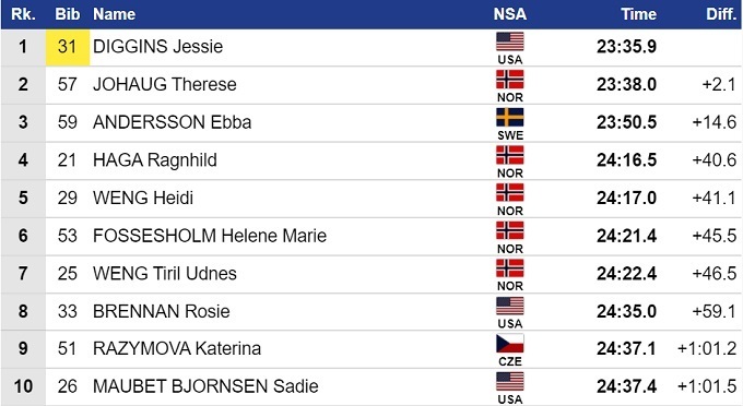майже врівень йшли всю дистанцію двоє, але у Діггінс був настільки стрімкий фініш, що знаючи її графік Йохауг не змогла її випередити
