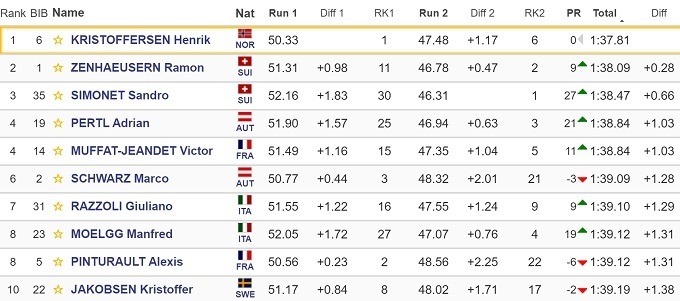 нарешті після скількох невиразних етапів Крістоферсен був першим-друга спроба була дещо дивною, багато з першої десятки слабо її прошли, що дозволило ветеранам Рацоллі та Мьоглю зайняти доволі високі місця. А Сімоне взагалі з 30-го на 3-є місце вийшов