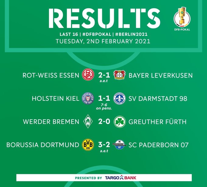 2 февраля состоялись 4 матча 1/8 финала Кубка Германии
