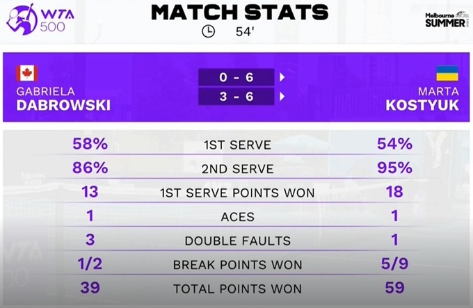 Марта Костюк (Украина) – Габриэла Дабровски (Канада) – 6:0, 6:3