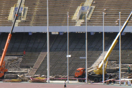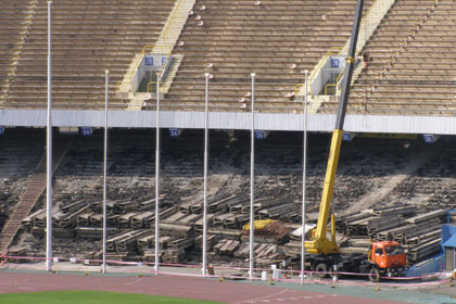 Не менее интенсивно идут дела по реконструкции НСК «Олимпийский». Работы ведутся ускоренными темпами, даже несмотря на определенные технические сложности. На прошлой неделе приступили к демонтажу второй осветительной мачты из четырех.