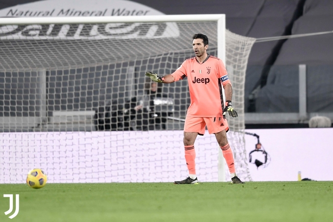 30 мин. Буффон риссковано играет в воротах, остановив ногой мяч на линии ворот.