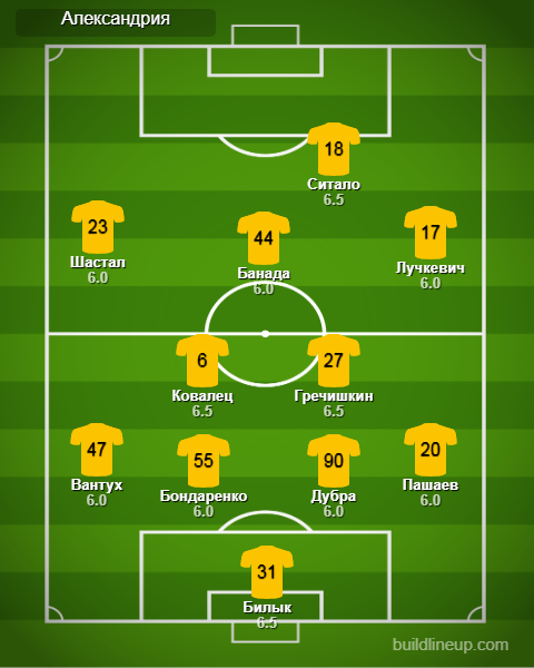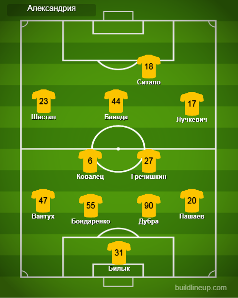 «Александрия»: Олег Билык, Павел Пашаев, Валерий Бондаренко, Каспарс Дубра, Валерий Лучкевич, Дмитрий Гречишкин, Кирилл Ковалец, Дмитрий Шастал, Евгений Банада, Роман Вантух, Артем Ситало