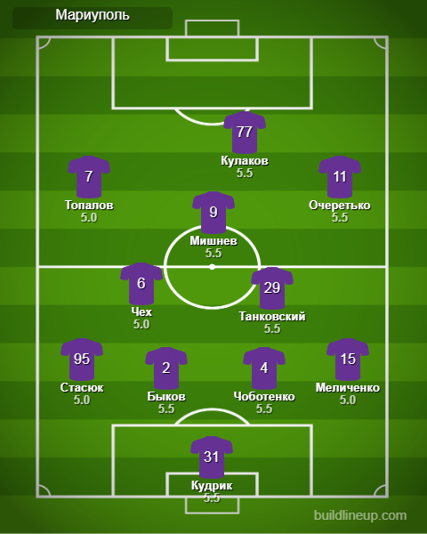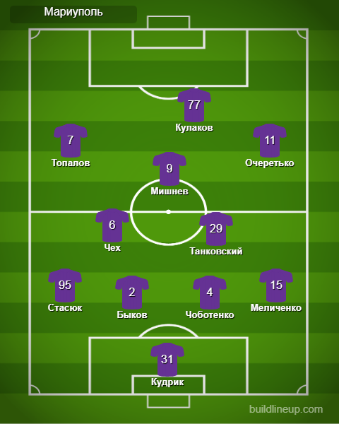 «Мариуполь»: Олег Кудрик, Петр Стасюк (Александр Драмбаев, 83), Алексей Быков, Сергей Чоботенко, Кирилл Меличенко (Игорь Кирюханцев, 46), Максим Чех, Вячеслав Танковский, Дмитрий Мишнёв (Никита Петерман, 83), Дмитрий Топалов (Алексей Кащук, 74), Олег Очеретько, Андрей Кулаков (Даниил Сикан, 74)
