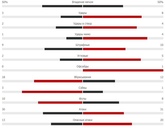 28 мин. Владение мячом - 50:50%. Фолят чаще игроки Зари - 5:3.