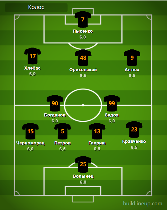 «Колос»: Волынец – Черноморец, Петров, Гавриш, Кравченко – Богданов (Милько, 77), Задоя – Хлебас (Данфа, 46), Ориховский (Костышин, 54), Антюх (Исаенко, 86) – Лысенко.