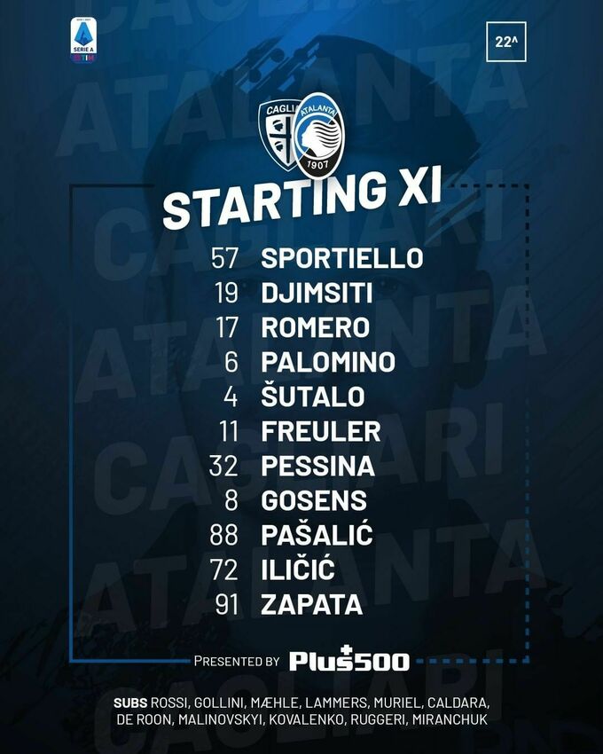 Состав «Аталанты»: Спортьелло, Джимсити, Ромеро, Паломино, Сутало, Фройлер, Пессина, Госенс, Пашалич, Иличич, Сапата.