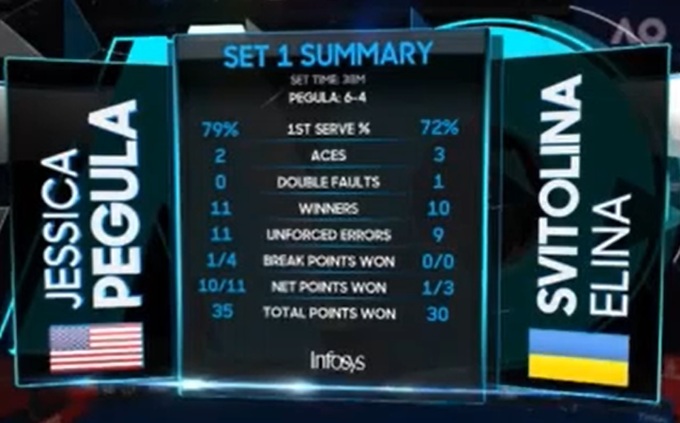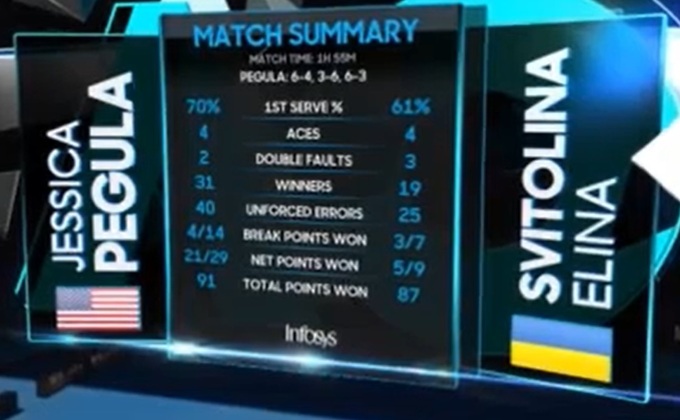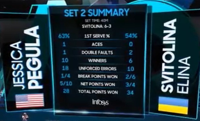 Пегуле одного брейка оказалось достаточно для того, чтобы закрыть партию. И хотя по цифрам очень большого преимущества у нее нет, выиграла она ее без вопросов. Элина совершенно не понимала, что нужно делать, когда у Джессики все получалось. В защите у нее отбиваться не выходило, в атаке – появлялись ошибки.