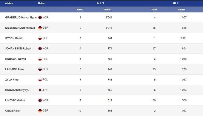 Дисквалификации победителя на Кубке мира не было с января далекого 2012 года, когда Грегор Шлиренцауэр был лишен победы на полетном старте в Кульме из-за того, что у него перед прыжком разошелся замок комбинезона и прыгал он с расстегнутым. В итоге та дисквалификация стоила Шлиренцауэру победы в общем зачете Кубка мира – он проиграл Андерсу Бардалю 58 очков. Гранеруду повторение такой судьбы, конечно же, не грозит, а вот Айзенбихлер вторую позицию в общем зачете потерять может.