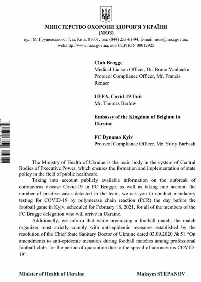 Решение Минздрава. Бельгийский Брюгге ожидает в Украине неожиданность