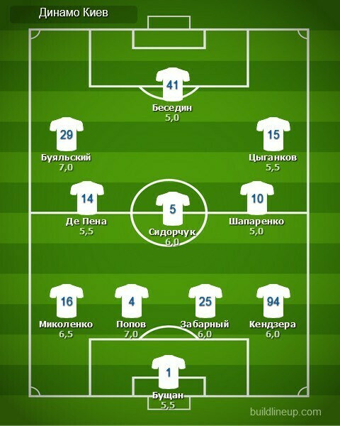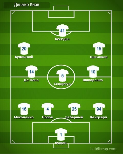 «Динамо»: Георгий Бущан, Томаш Кендзёра (Александр Караваев, 81), Илья Забарный, Денис Попов, Виталий Миколенко, Николай Шапаренко (Владимир Шепелев, 70), Сергей Сидорчук, Карлос Де Пена (Жерсон Родригес, 69), Виктор Цыганков, Виталий Буяльский, Артем Беседин (Владислав Супряга, 81).