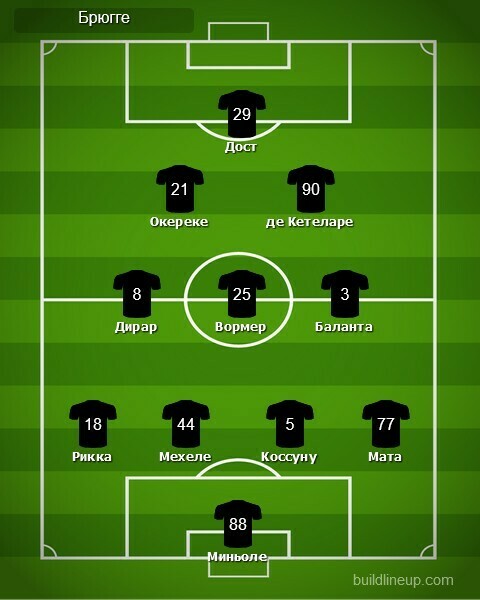 «Брюгге»: Симон Миньоле, Федерико Рикка, Брандон Мехеле, Одилон Коссуну, Клинтон Мата, Шарль Де Кетеларе, Набиль Дирар (Игнасе ван дер Бремпт, 70), Руд Вормер, Эдер Баланта, Давид Окереке (Юссуф Баджи, 69), Бас Дост (Максим Де Кёйпер, 92).