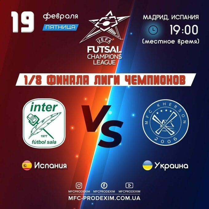 Видеотрансляция поединка 1/8 финала Лиги чемпионов по футзалу между командами «Интер Мовистар» (Испания) и «Продэксим» (Херсон) на территории Украины состоится.