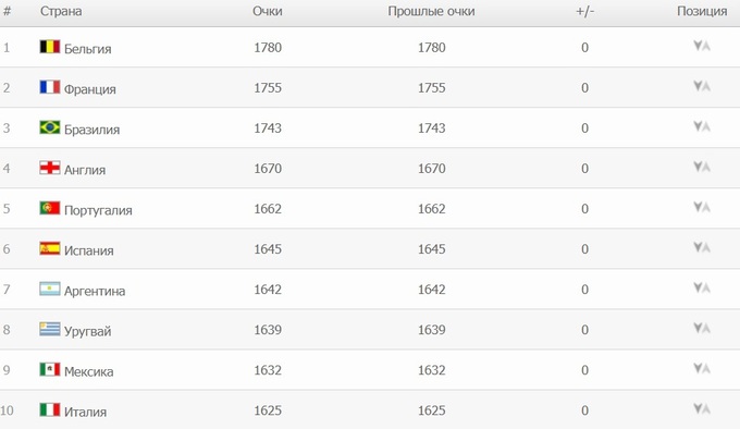 Топ-10 рейтинга ФИФА