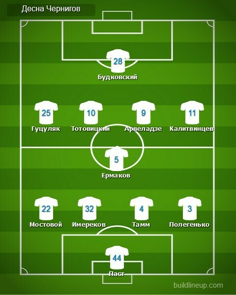 «Десна»: Евгений Паст, Павел Полегенько, Йоонас Тамм, Максим Имереков, Андрей Мостовой, Виталий Ермаков, Леван Арвеладзе (Андрей Гитченко, 70), Владислав Калитвинцев (Егор Картушов, 82), Алексей Гуцуляк (Денис Безбородько, 82), Андрей Тотовицкий, Филипп Будковский (Евгений Чепурненко, 94)