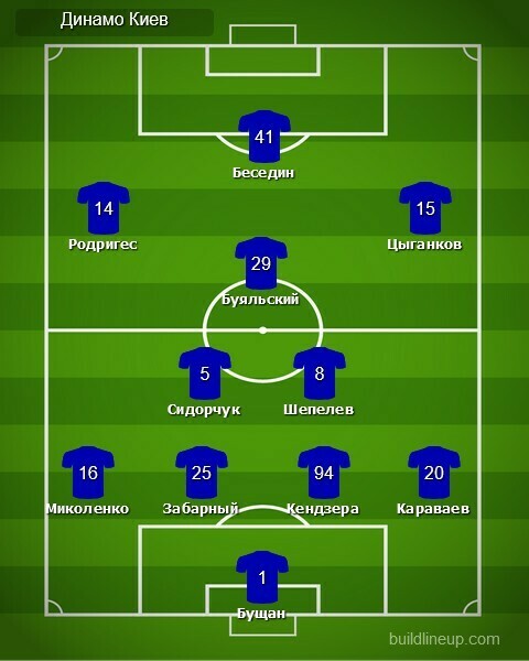 «Динамо»: Георгий Бущан, Aлександр Караваев, Виталий Миколенко, Илья Забарный, Томаш Кедзера, Сергей Сидорчук, Владимир Шепелев (Николай Шапаренко, 65), Жерсон Родригес, Виталий Буяльский, Виктор Цыганков, Артем Беседин (Владислав Супряга, 86)