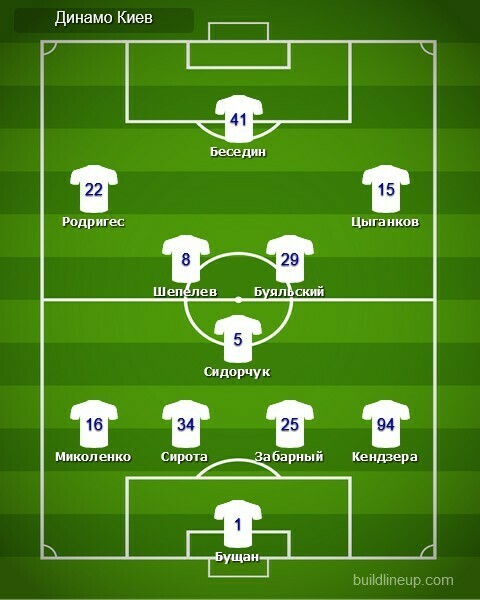 «Динамо»: Георгий Бущан, Виталий Миколенко, Александр Сирота, Илья Забарный, Томаш Кендзёра (Александр Караваев, 77), Сергей Сидорчук, Владимир Шепелев (Николай Шапаренко, 68), Виталий Буяльский (Александр Андриевский, 86), Жерсон Родригес, Артем Беседин, Виктор Цыганков.