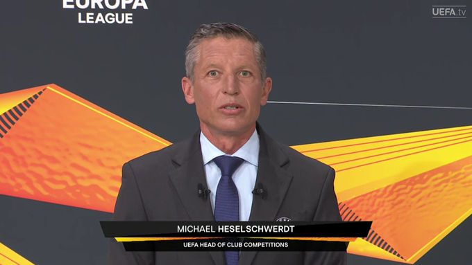 14:06. Руководит жеребьевкой глава отдела клубных соревнований УЕФА Михаэль Хесельшвердт.