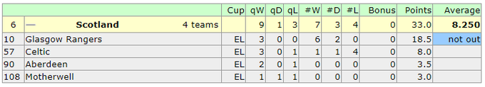 У главного конкурента, Шотландии, остается один клуб. «Рейнджерс» опять переиграл бельгийский «Антверпен» (5:2) и принес +0.500 за день (у них очки делят на четверых). За четверг Украина сократила отставание на 0.300, и теперь отрыв Шотландии микроскопичен (0.025).