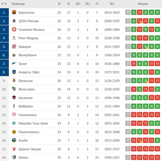 Евролига. Реал уверенно обыграл Жальгирис, победы ЦСКА и Баварии