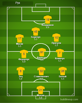 «Рух»: Мысак, Зец, Стаменкович, Белый, Федорчук, Мисик, Кондраков (Кухаревич, 64), Климчук (Бойчук, 64), Карасюк, Притула (Кухарук, 46), Борячук