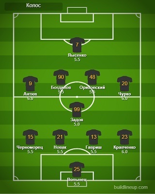 «Колос»: Волынец, Черноморец, Ориховский (Костишин, 67) , Богданов, Кравченко, Задоя (Милько, 53), Гавриш, Чурко (Ильин, 67), Новак, Лысенко (Исаенко, 76), Антюх (Данфа, 76)