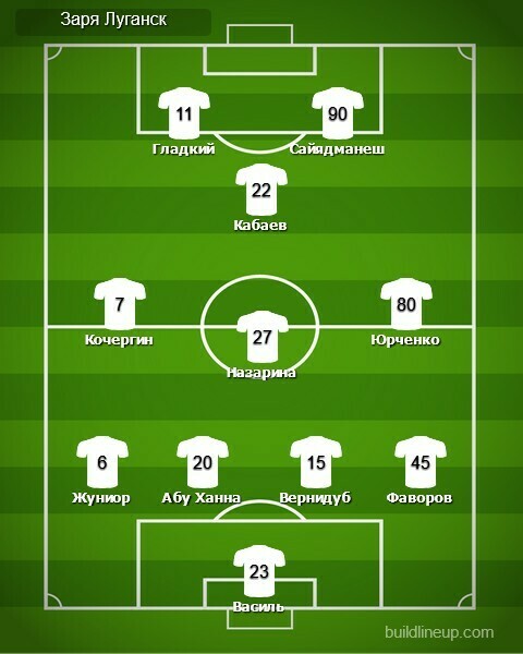 «Заря»: Никола Василь, Фаворов Денис, Виталий Вернидуб, Йоэль Абу Ханна, Жуниор Реис, Егор Назарина, Владислав Кочергин (Дмитрий Хомченовский, 13), Владлен Юрченко (Андрейс Цыганикс, 81), Аллахьяр Сайядманеш, Владислав Кабаев (Дмитрий Иванисеня, 73), Aлександр Гладкий (Шахаб Захеди, 73)