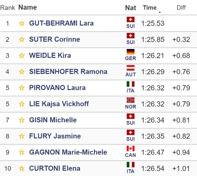 Для Гут Бехрами это четвертая подряд победа на Кубке мира. Вчера первый скоростной спуск в Валь ди Фасса также завершился ее победой.