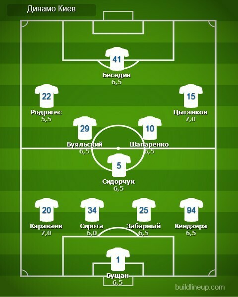 «Динамо»: Георгий Бущан, Aлександр Караваев (Сидклей, 88), Илья Забарный, Aлександр Сирота, Томаш Кендзёра, Сергей Сидорчук (Владимир Шепелев, 62), Николай Шапаренко, Виктор Цыганков (Богдан Леднев, 80), Жерсон Родригес (Карлос Де Пена, 62), Виталий Буяльский, Артем Беседин (Владислав Супряга, 62)