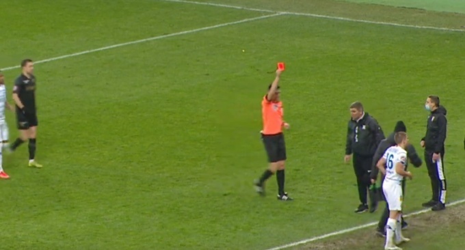 Во втором тайме напряженного матча четвертьфинала Кубка Украины «Динамо» - «Колос» красную карточку получил тренер Руслан Костышин.