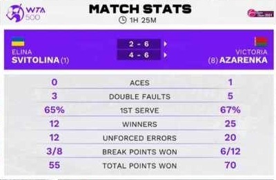 Элина Свитолина (Украина) – Виктория Азаренко (Беларусь) – 2:6, 4:6