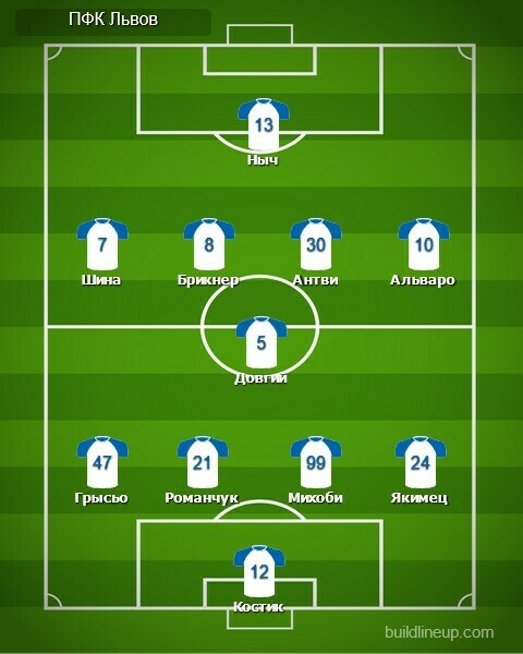ПФК «Львов»: Костик, Якимец, Михоби, Романчук, Грысьо, Антви (Чирьяк, 67), Брикнер (Сабино, 83), Довгий, Альваро (Казлаускас, 83), Шина (Семенив, 61), Ныч (Захаркив, 83)