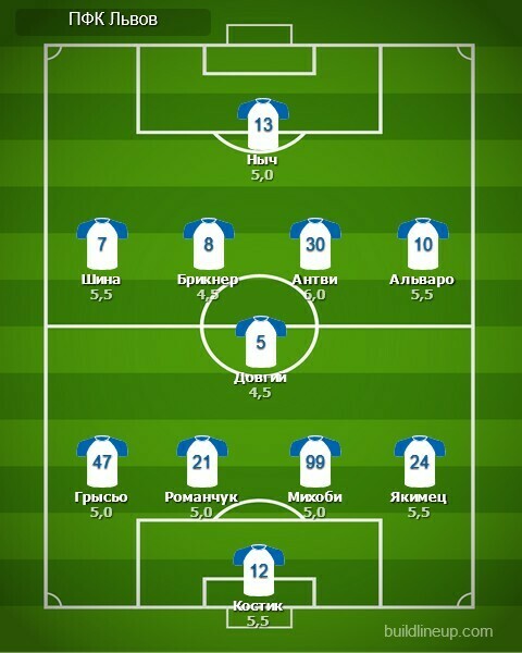 Замены ПФК «Львов»: Семенив - 5,5; Чирьяк - 5,0; Сабино - б/о; Казлаускас - б/о; Захаркив - б/о.