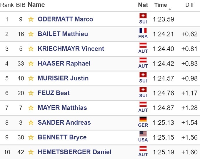 Горные лыжи. Одерматт выиграл супергигант в Заальбахе