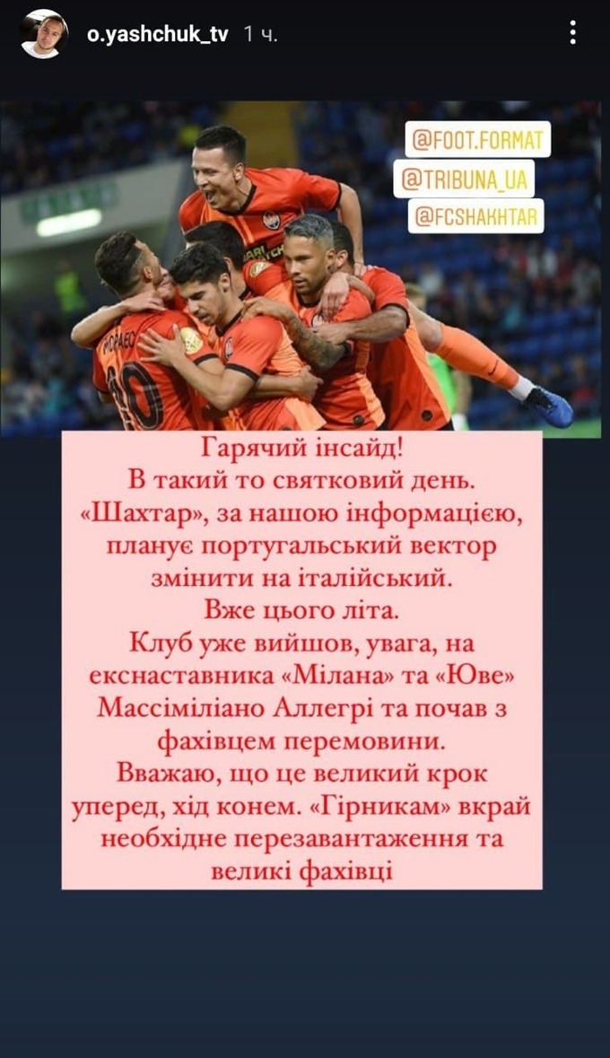 Как сообщается, «Шахтер» и Аллегри уже начали переговоры.