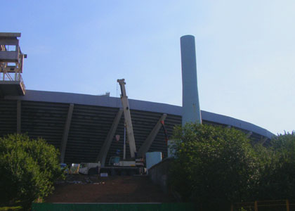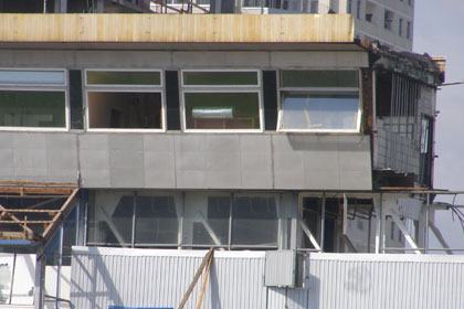 А вот темпы демонтажа НСК «Олимпийский» не могут не радовать. Несмотря на технические трудности, вторая прожекторная опора, которая ранее располагалась на одной из четырех вышек, срезана наполовину. Демонтированные части надолго не задерживаются, они разрезаются и вывозятся с территории. Ударными темпами разбирают и ложу прессы: по всему периметру демонтированы окна, разобрана значительная часть со стороны Бессарабки.